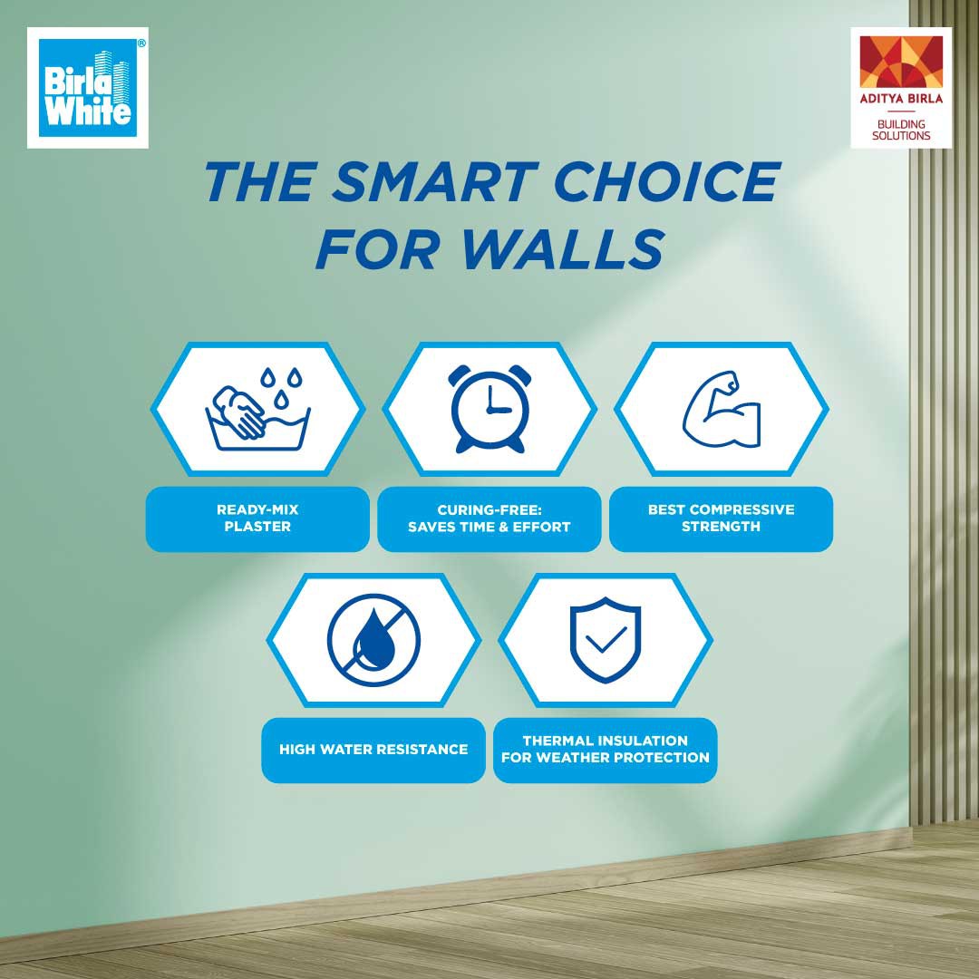 Now that you know the order, let’s talk about the foundation of all smooth walls. The plaster layer is used to give a strong base for the walls. It creates a structural leveling base for rough walls. To have the perfect foundation for your new home walls, use high-quality options like Birla White Levelplast. It is a white cement-based ready-mix cementitious plaster that makes construction easier, cleaner, faster, and more reliable.